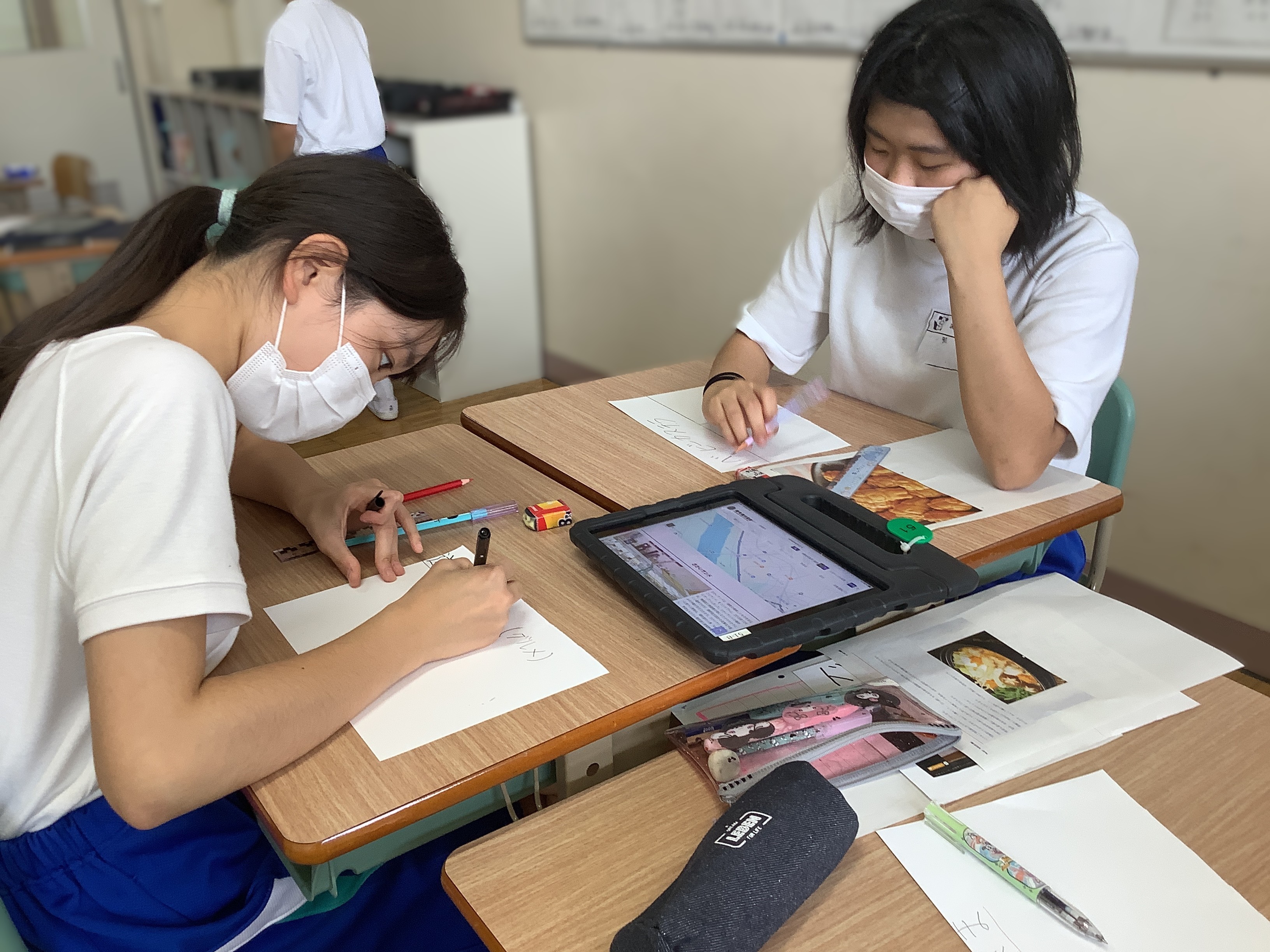 中学部3年では、総合的な学習の時間に「茨城県をPRしよう」をテーマにして調べ学習をしています。茨城県の名所や特産物など、茨城県の魅力についてタブレット端末を活用して情報収集しています。