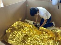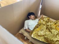 9/15(金)に体育館で避難所体験をしました。防災用アルミ保温シートを使ってみたり、非常用トイレに入ってみたりしました。