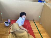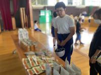 9/18(木)に避難所体験をしました。体育館に段ボールで作ったスペースで休憩したり、非常食を手に取ったりしました。いろいろな種類の非常食を見て「たくさんあって飽きないね」といった感想が聞かれました。