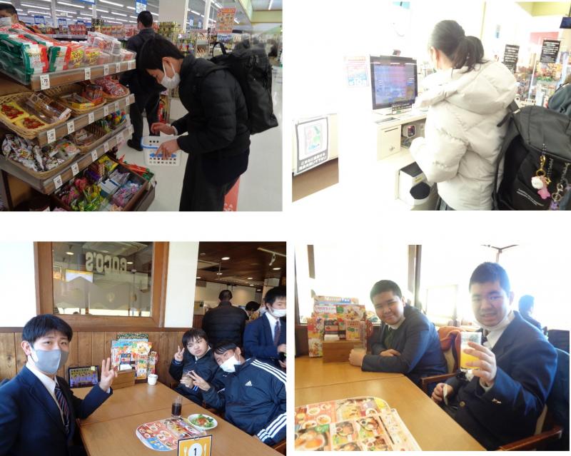 2月17日(金)路線バスや電車を利用して、小山駅に行ってきました。各自、券売機で切符を購入して、乗車のマナーに気を付けながら目的地まで行くことができました。昼食は、グループに分かれて好きなメニューを選んで食べました。緊張しながらも楽しく体験学習をすることができました。
