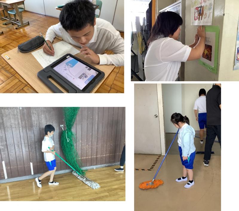 主な仕事は、校内の清掃及び児童生徒への清掃の呼びかけをしています。